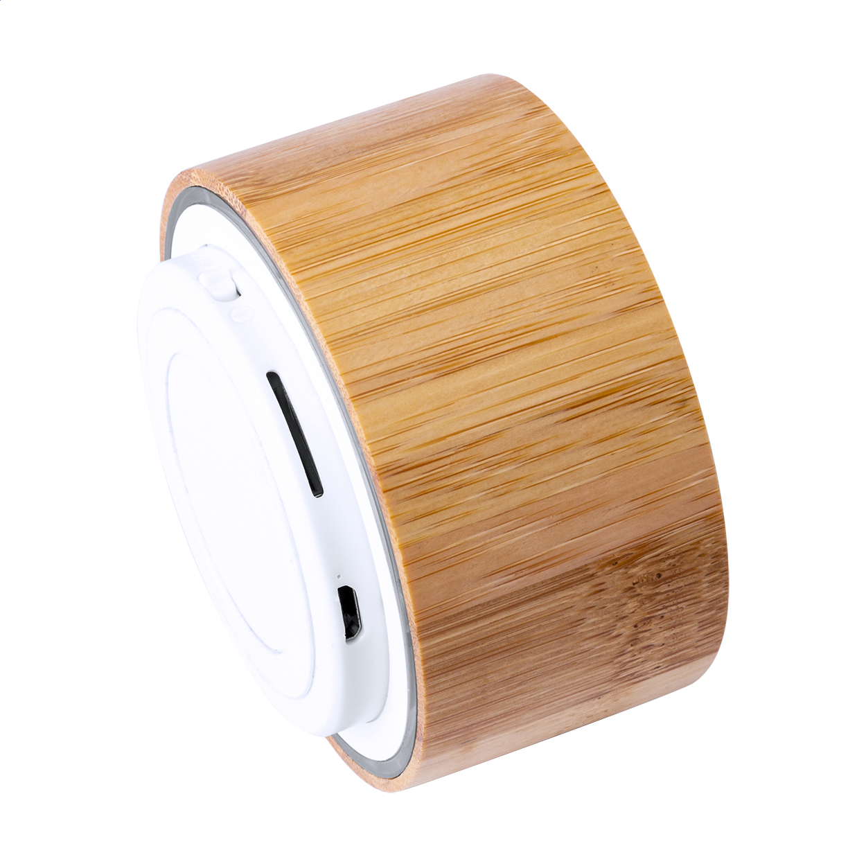 Bezprzewodowy głośnik w bambusowej obudowie z funkcją zestawu głośnomówiącego, radiem FM i wbudowanym akumulatorem. W zestawie kabel USB do ładowania.