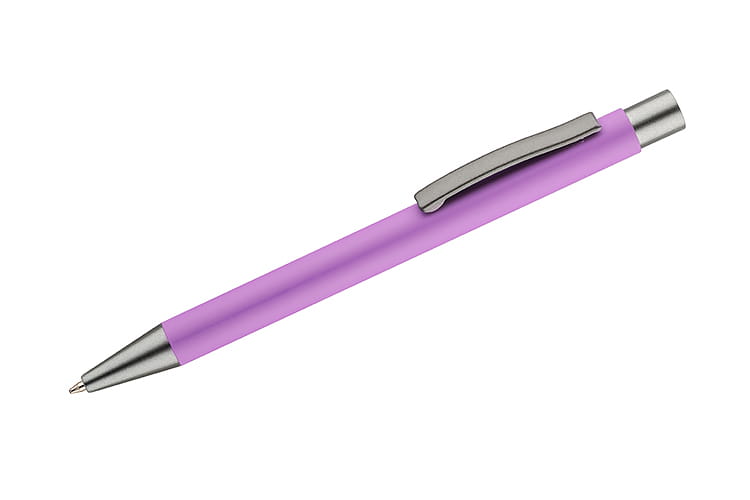 Długopis GOMA to prosty design połączony z przyjemną w dotyku gumowaną powierzchnią. Całość jest utrzymana w lekkich, matowych barwach. Wykonany z aluminium. Wykończenia w kolorze grafitowym. Wkład w kolorze niebieskim.