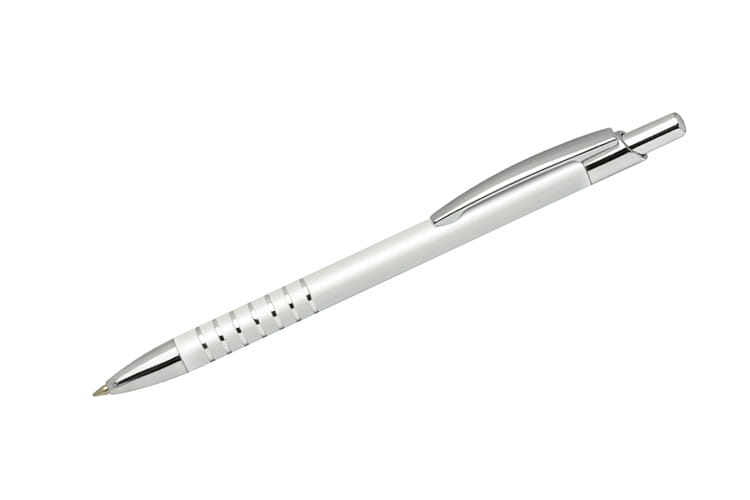Prosty długopis wykonany z aluminium ozdobiony szerokimi ringami.