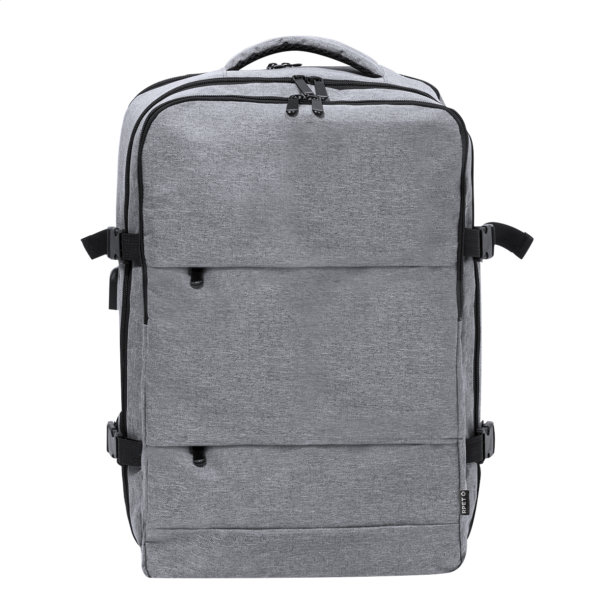 Doheny to nowoczesny i pojemny plecak wykonany z wodoodpornego poliestru RPET 300D, który doskonale sprawdzi się zarówno w codziennym użytkowaniu, jak i w podróży. Model wyposażono w trzy główne przegrody zapinane na zamek, co pozwala na wygodną organizację zawartości, oraz dwie przednie kieszenie i boczną kieszeń na suwak, idealne na podręczne akcesoria.