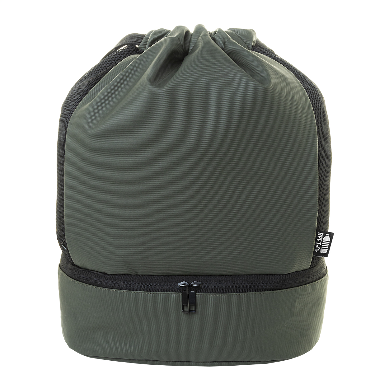 Duodraw worek ze sznurkami RPET (AP808285-10) to funkcjonalny i nowoczesny plecak typu worek, który łączy wygodę użytkowania z ekologicznym podejściem. Wykonany z wytrzymałego poliestru RPET 600D pochodzącego z recyklingu, pokrytego warstwą poliuretanu, zapewnia odporność na codzienne użytkowanie oraz wilgoć.