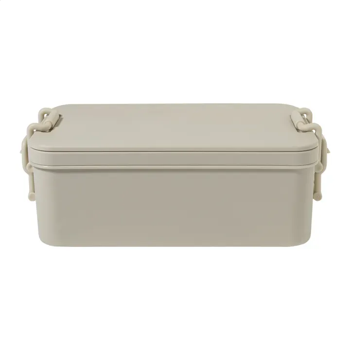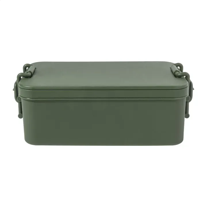 Funkcjonalny lunch box wykonany z trwałego tworzywa PP, wyposażony w zestaw sztućców (widelec, łyżka i nóż), zapięcie na klamrę oraz dwie oddzielne przegródki o pojemności 1000 ml i 800 ml. Dzięki podwójnej komorze umożliwia wygodne oddzielenie różnych potraw.