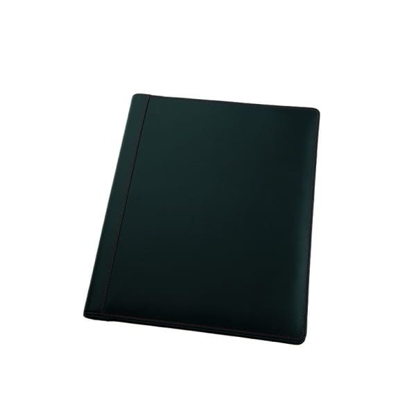Luksusowy folder wykonany ze skóry z czerwonymi przeszyciami. Wyposażony jest w notes o formacie A4 (25 stron), dwie duże i dwie małe kieszenie oraz przegródki na wizytówki. Zapakowany w eleganckie pudełko prezentowe z certyfikatem autentyczności Pierre Cardin.