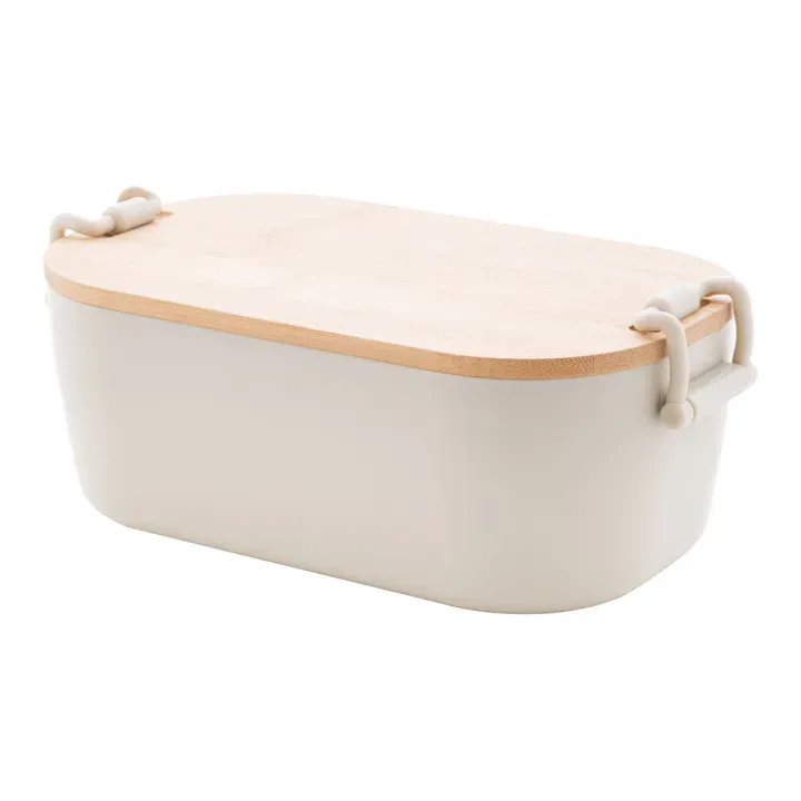 Lunch box FUBOO o pojemności 1000 ml wykonany z trwałego tworzywa PP oraz wyposażony w pokrywkę z naturalnego bambusa. Zapięcie na klamrę zapewnia wygodne i stabilne zamknięcie podczas transportu.