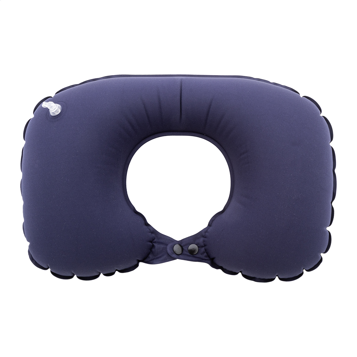 Dmuchana poduszka podróżna z poliestru RPET z wbudowaną pompką do łatwego pompowania i spuszczania powietrza. W pasującym materiałowym woreczku ze ściągaczem. Z charakterystyczną metką RPET.