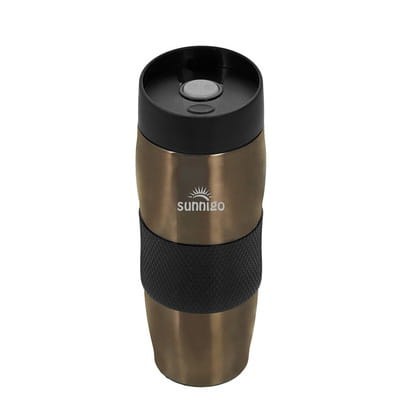 Kubek z miedzianą izolacją próżniowa, podwójne ścianki ze stali nierdzewnej z próżnią między ściankami dzięki czemu zachowuje funkcje termosu i długo utrzymuje temperaturę nie oddając jej na zewnątrz, plastikowa pokrywa, szczelne zamknięcie, funkcja push open / close, nie wymaga obsługi oburącz, gumowy uchwyt, półmatowe wykończenie, klasa termiczna: 3 + leakproof.