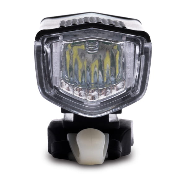 Lampka rowerowa ładowana na USB. Białe światło LED. Dioda XPE CREE, 150 lumenów, Odległość światła: 5-10 metrów, 3 tryby świecenia: mocny, ekonomiczny i migający. Akumulator litowo-jonowy 350mAh. Regulowany pasek mocujący do kierownicy. Kabelek do ładownia w zestawie. Wymiary: 65 x 34 x 28mm.