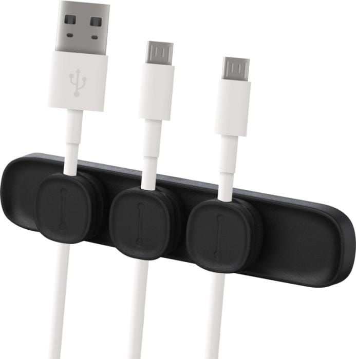Magnetyczny organizer na kable, który pomaga utrzymać porządek na biurku. Przyczep magnetyczny klips do kabli, a następnie umieść je na pasku, aby je zamocować. W zestawie znajdują się 3 sztuki klipsów magnetycznych. Dostarczane w pudełku upominkowym Avenue. Plastik silikonowy, Żelazo. Długość: 9cm. Szerokość: 2cm. Wysokość: 0,50cm.
