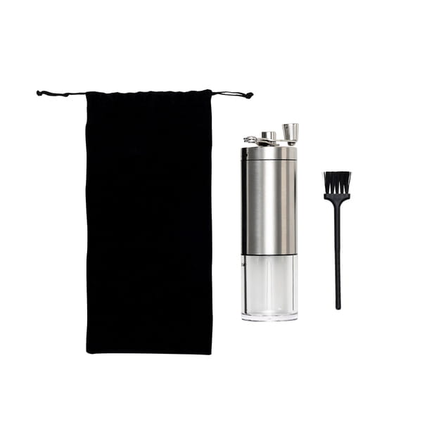 W zestawie znajduje się szczoteczka do czyszczenia żaren, dzięki której utrzymanie młynka w czystości jest łatwe i wygodne. Aksamitny woreczek do przechowywania młynka pozwala zabrać go ze sobą w podróż, do pracy czy na wycieczkę, aby cieszyć się ulubioną kawą w dowolnym miejscu.