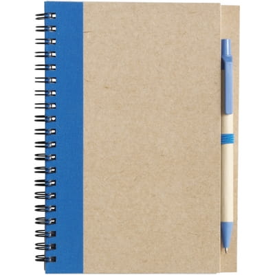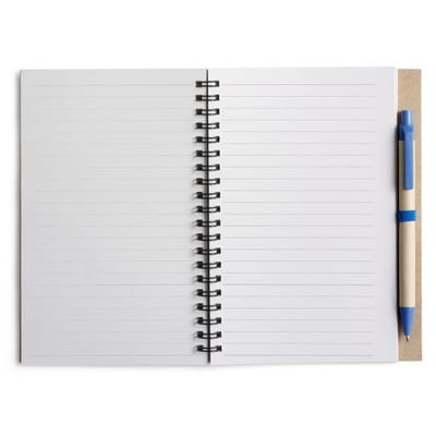 Notatnik (ok. A5, ok. 60 kartek w linie), dołączony biodegradowalny długopis, spiralne bindowanie