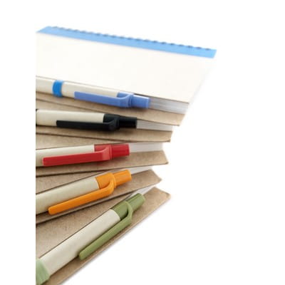Notatnik (ok. A5, ok. 60 kartek w linie), dołączony biodegradowalny długopis, spiralne bindowanie