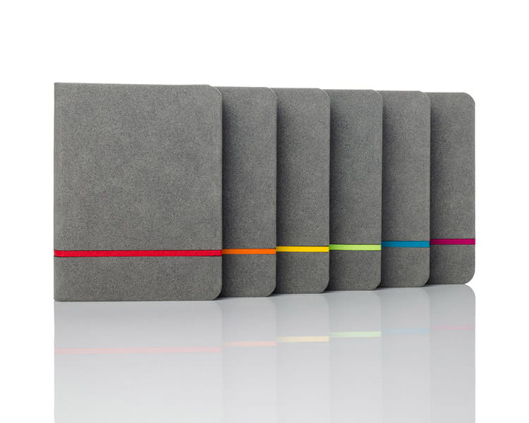 Wyjątkowy notes formatu A6 wyprodukowany w Unii Europejskiej z innowacyjnego materiału - papieru z kamienia. Do produkcji tego papieru nie używa się drewna, celulozy, ani wody, dlatego wytworzenie go jest w 100% ekologiczne. Papier z kamienia jest wyjątkowo odporny na rozdarcia oraz na działanie wilgoci, ulega szybkiej biodegradacji, jest miękki w dotyku i dodatkowo zużywa o 30% mniej tuszu (atramentu). Notes w okładce wykonanej z ekoskóry imitującej zamsz w modnym połączeniu kolorystycznym - szare tło z cienkim paskiem w żywych kolorach. Zakładka - wstążeczka dopasowana kolorystycznie do kolorowego paska na okładce. Posiada 74 kartki w kratkę.