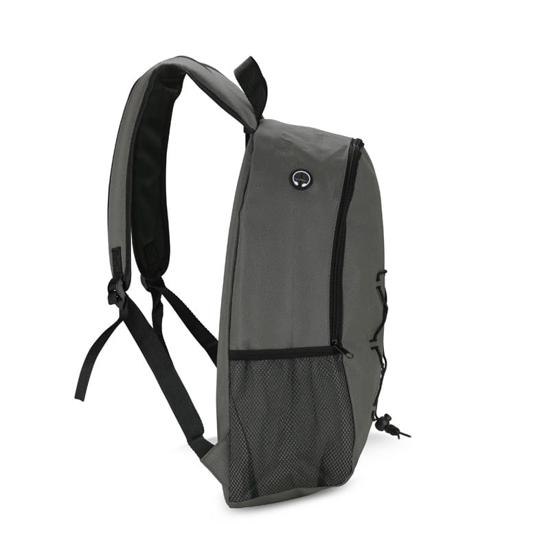 Plecak KAPIRO to niezawodny towarzysz podróży, stworzony z wytrzymałego poliestru 600D, zapewniającego nie tylko trwałość, ale także stylowy wygląd. Główna komora plecaka, zamykana na wytrzymały zamek, oferuje dużo miejsca na przechowywanie najpotrzebniejszych rzeczy. Dzięki temu można łatwo zorganizować swoje rzeczy, bez obawy o ich bezpieczeństwo. Dodatkowo, dwie siateczkowe kieszonki umieszczone po bokach plecaka pozwalają na przechowywanie butelki z wodą czy innych drobnych przedmiotów, z łatwym dostępem do nich w każdej chwili. Czarne gumki, umieszczone zewnętrznie, to nie tylko element dekoracyjny, ale przede wszystkim praktyczny dodatek, który pozwala na zapakowanie małego kocyka lub lekkiej kurtki. Dodatkowym udogodnieniem jest wyjście na słuchawki umieszczone w głównej komorze plecaka.
