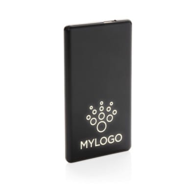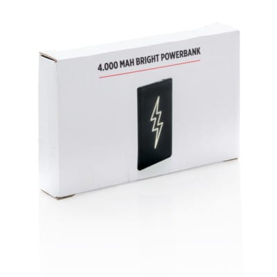 Płaski i trwały power bank 4000 mAh, trwały akumulator litowo-polimerowy, grawer ukazuje podświetlaną powierzchnię, wyjście 5V/2.1A, wejście 5V/1.5A, kabel micro USB w komplecie