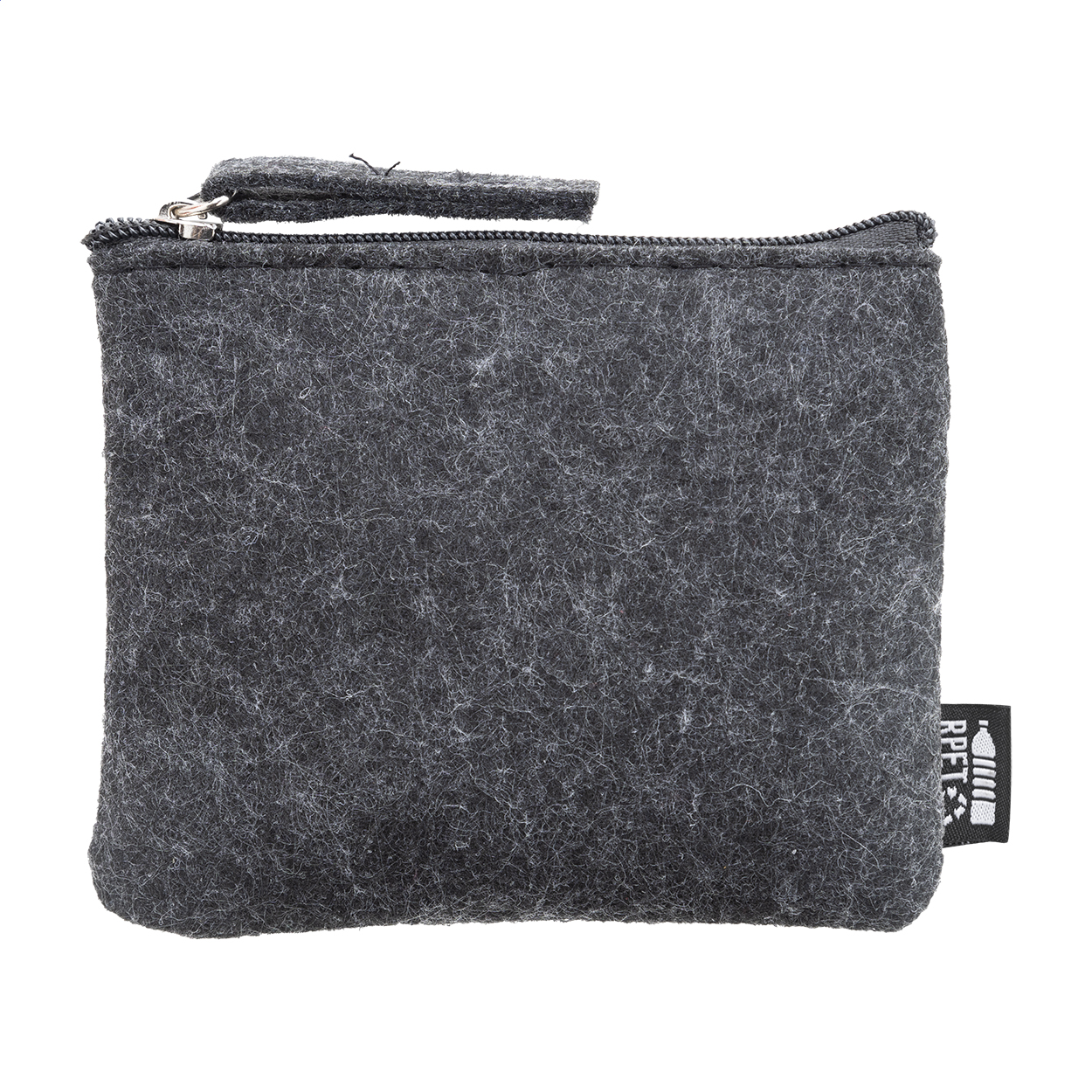 Zapinana na suwak torebka z filcu RPET. Z charakterystyczną metką RPET.