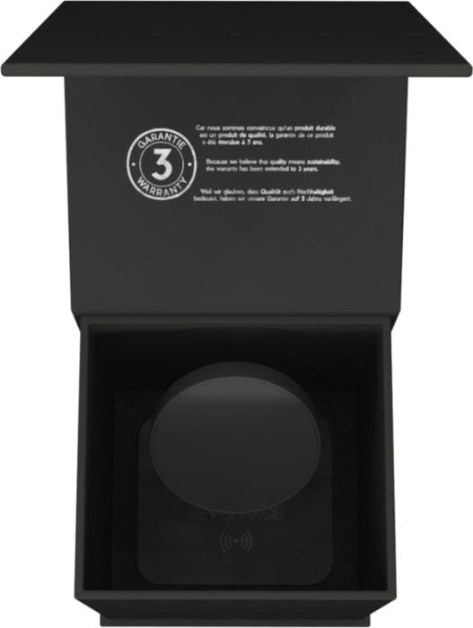 Magnetyczna ładowarka bezprzewodowa z podświetlanym logo z 2 oddzielnymi wyjściami indukcyjnymi do ładowania 2 urządzeń jednocześnie. Okrągła część to magnetyczna ładowarka bezprzewodowa o mocy 15 W. Aby skorzystać z mocy ładowania 15 W, ładowarka musi być podłączona za pomocą dołączonego kabla oraz do zasilacza ściennego o mocy co najmniej 20 W. Podstawa zbudowana jest z wejścia i wyjścia USB-C, a także wyjścia indukcyjnego o mocy 5 W do ładowania etui na słuchawki douszne (typu AirPods). Do ładowarki dołączona jest magnetyczna naklejka zapewniająca kompatybilność ze wszystkimi telefonami (urządzenie musi być kompatybilne z systemem ładowania indukcyjnego). Jeśli telefon nie posiada technologii MagSafe (począwszy od iPhone'a 12), naklejkę można przykleić z tyłu telefonu, aby był on kompatybilny z uchwytem magnetycznym. W zestawie z kablem do ładowania wykonanym z tworzywa sztucznego PET pochodzącego z recyklingu. Wymiary ładowarki: 7 x 8 x 12,5 cm. Zapakowana w pudełko upominkowe (11 x 10 x 12,5) z magnetycznym zamknięciem. 3-letnia gwarancja. Plastik ABS, Guma, Plastik PET z recyklingu.