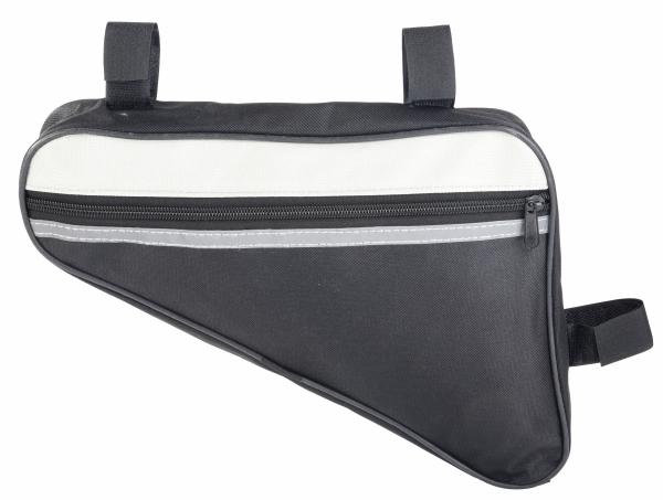 Torba rowerowa na ramę BIKE MASTER. Z rzepami do mocowania na ramie, przednia strona z odblaskami, schowek na zamek błyskawiczny, wewnętrzna kieszeń siateczkowa, duża kieszeń siateczkowa z tyłu.
