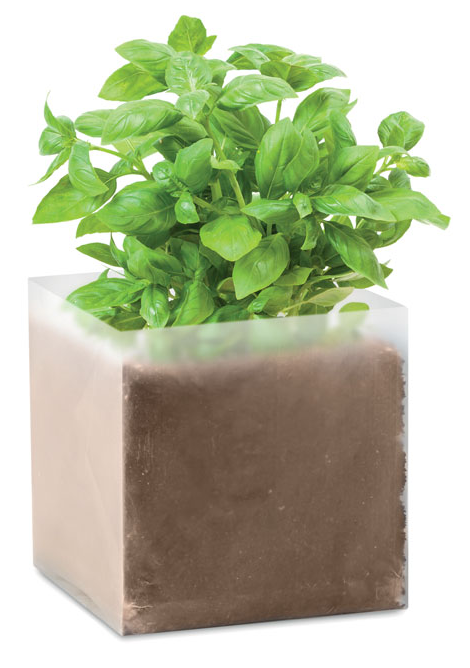 Magiczna torba z nasionami do uprawy bazylii. Dodając 300 ml wody, otrzymujesz 1 litr kompostu ogrodowego.