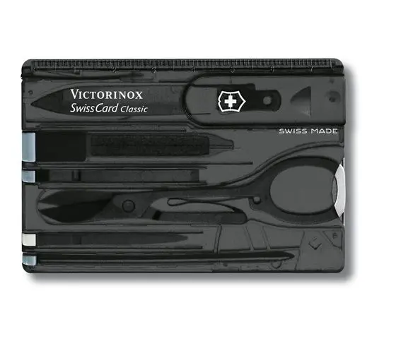 Zaskoczy Cię, jak wiele narzędzi udało nam się zmieścić w niewielkiej obudowie Swiss Card. Zdziwisz się również, jak często będziesz korzystać z tych ukrytych w płaskiej, niepozornej karcie przyrządów. Jeśli dodamy do tego przemyślany, wielokrotnie nagradzany design i niesamowitą funkcjonalność, otrzymujemy zestaw, z którym ciężko się rozstać. Kolejną zaletą Swiss Card jest kształt i rozmiar – narzędzie z łatwością zmieści się w każdym portfelu.