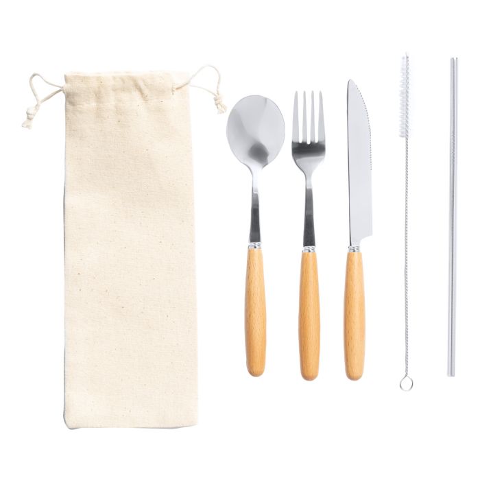 Zestaw zawiera: widelec, nóż, łyżka, słomka do picia, szczoteczka do czyszczenia