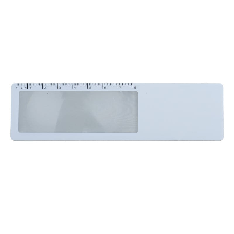 Zakładka z lupą o trzykrotnym powiększeniu i linijką 8 cm w kolorze białym.