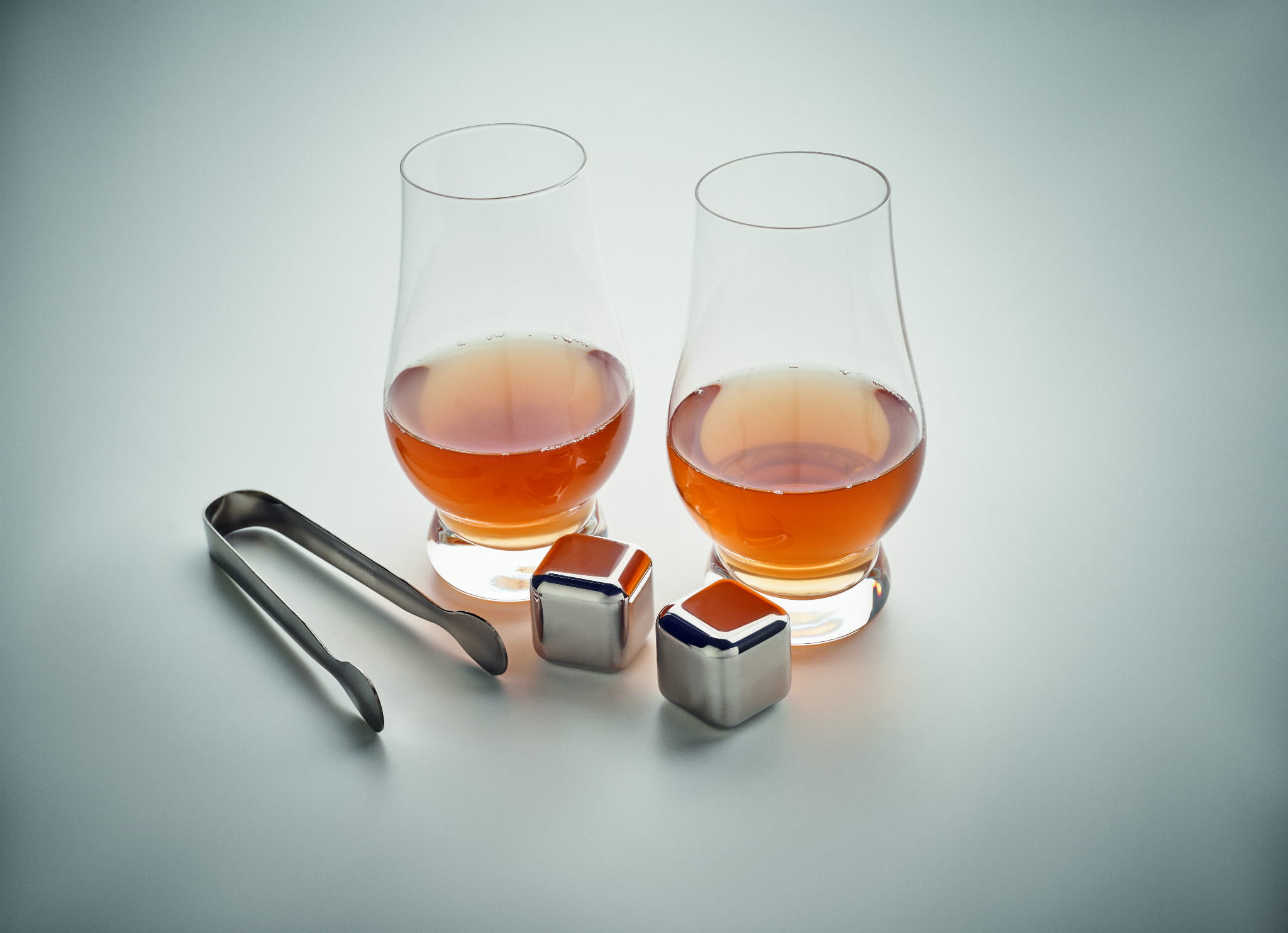 Do zestawu dołączono również dwie kostki chłodzące ze stali nierdzewnej, które można wielokrotnie używać – zapewniają idealne schłodzenie drinka bez rozcieńczania go wodą. Praktyczne szczypce umożliwiają higieniczne i wygodne przenoszenie kostek, a elegancki bawełniany woreczek pozwala na ich bezpieczne i estetyczne przechowywanie.