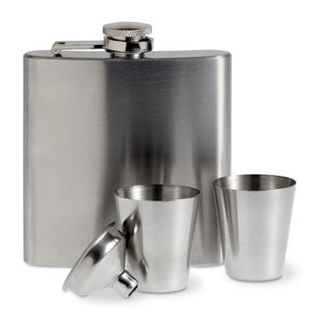 Zestaw: metalowa piersiówka o pojemności 175 ml z 2 kieliszkami i lejkiem.
